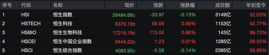 9月25日,港股三大指数涨跌不一。截至收盘,恒生指数跌0.13%,恒生科技指数涨0.89%,恒生国企指数涨0.01%。全日大市成交额为3149亿港元,南向资金净流入110.46亿港元。